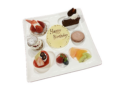 ※ケーキ、アニバーサリープレートともにお好きなメッセージをお入れすることができます。ご予約時にメッセージ内容をお知らせくださいませ。