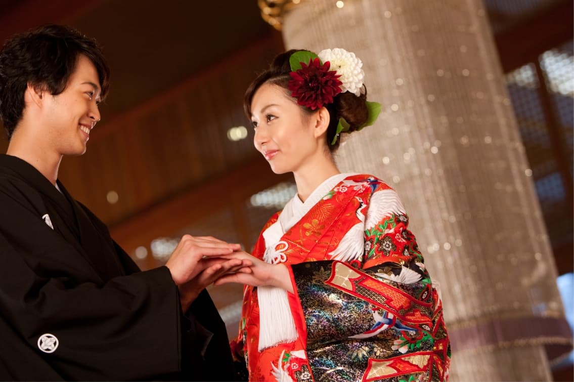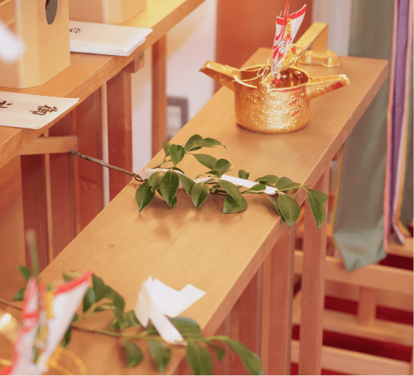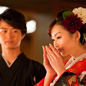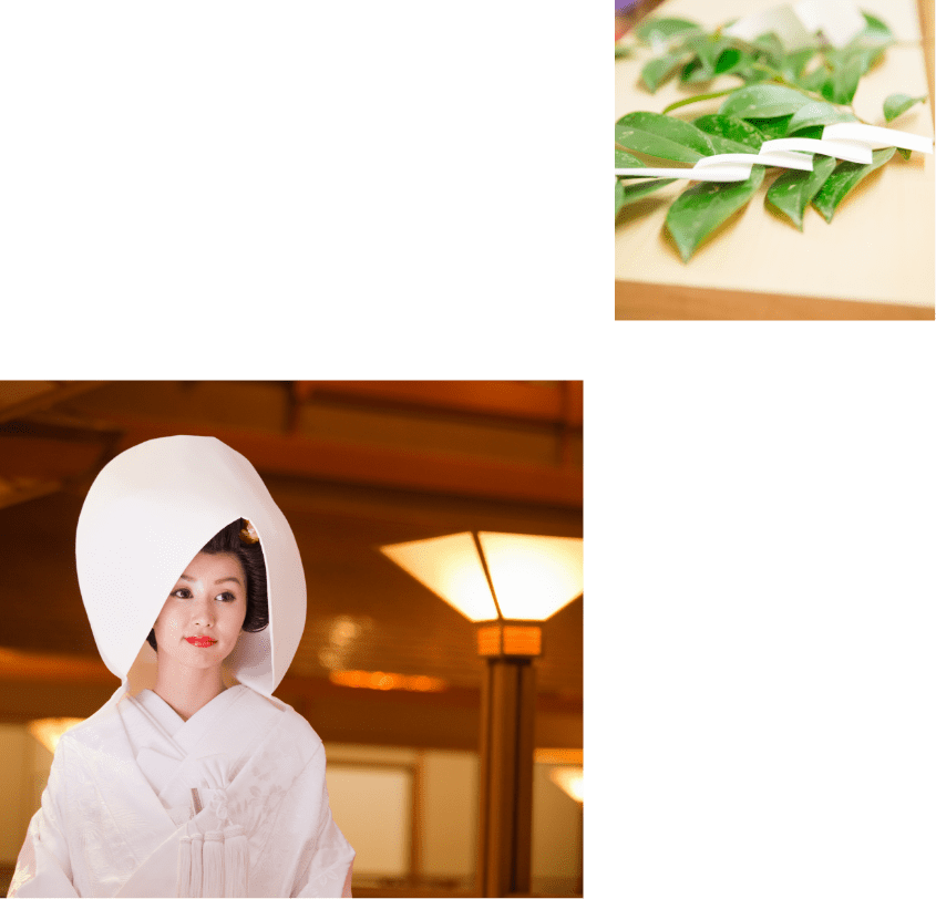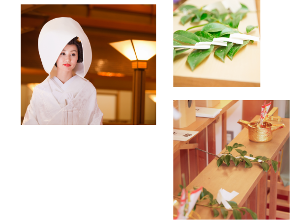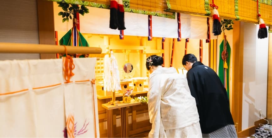 日本伝統の神前式は、古式ゆかしく厳粛に、おふたりの誓いと祈りを捧げます。