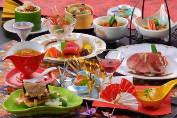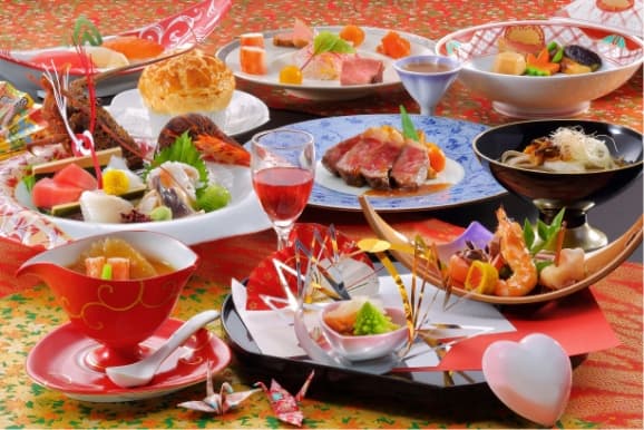 笑顔と笑顔をつなぐ美味しさは、四季折々の美味を知り尽くした食の達人の職人技。伝統的な日本料理をベースに旬の素材をふんだんに使い、祝いのお席に緑の一品で花柳も加えたお料理です。贅を尽くした味わいの宴を、真心込めてお届けします。